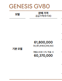 여러분은 이 가격이 어떻다고 생각하시나요? 기본형이 6천만 원부터 시작한다... 요즘 경기가 안 좋아 할인받는 방법들이 어떤 게 있을진 모르겠지만 수입차량과 비교해서 그렇게 저렴하다는 생각은 들지 않는 것 같습니다. 이것저것 옵션을 단다고 생각해보면 7천,8천은 우습게 넘지 않을까 싶은데요.