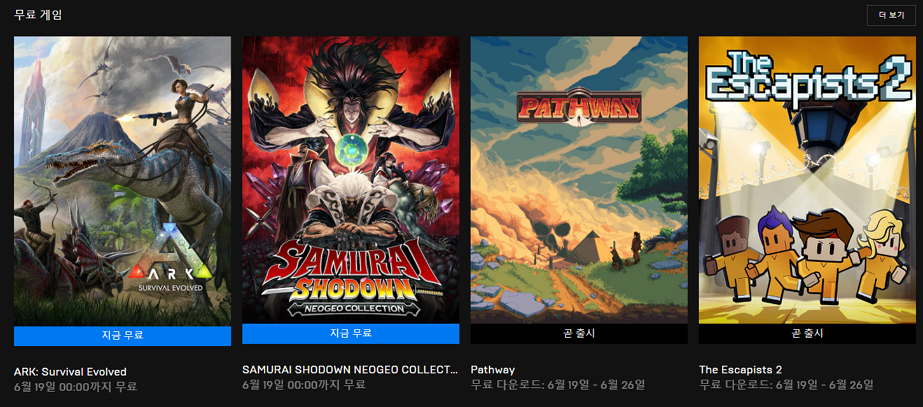 현재 사무라이 쇼다운과 아크가 무료 다운로드로 풀려있군요. 다양한 게임들을 무료로 즐기실 수 있지만 허접한 게임들이 많아서 그리 추천 드리지는 않습니다. 곧 GTA5 도 무료로 풀린다는 말이 있던데...기대해 봐도 좋을 듯 싶군요.
