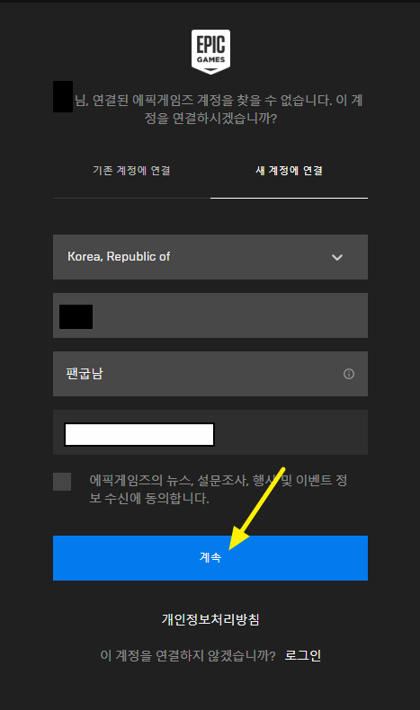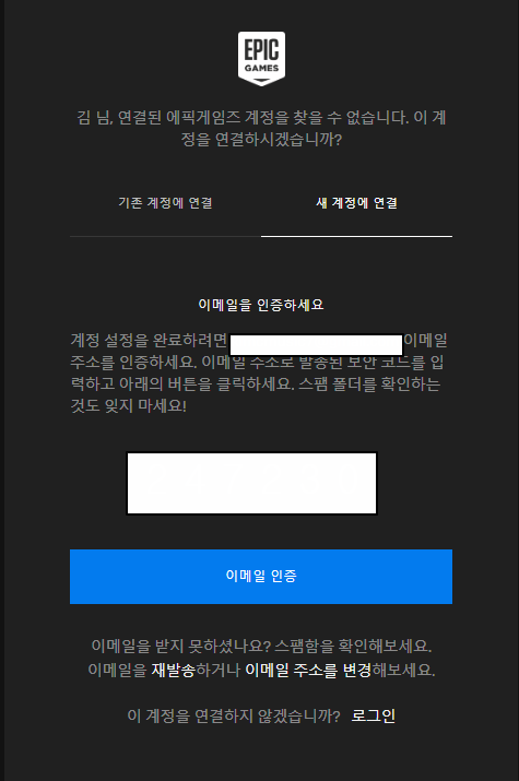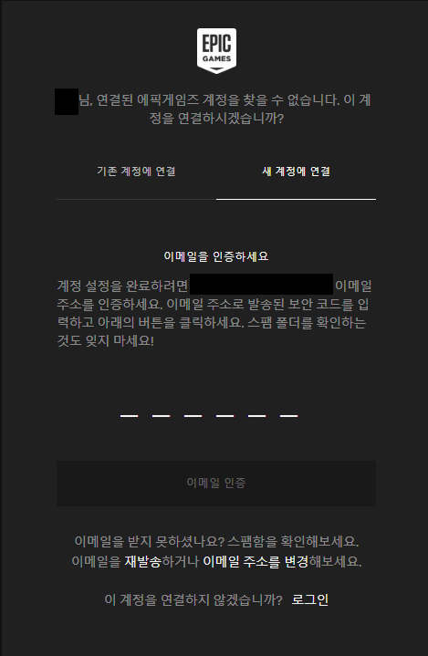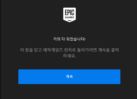 런처가 모두 설치 되었으면 다시한번 에픽 계정 로그인을 통해 웹사이트에 로그인을 하라고 나옵니다.