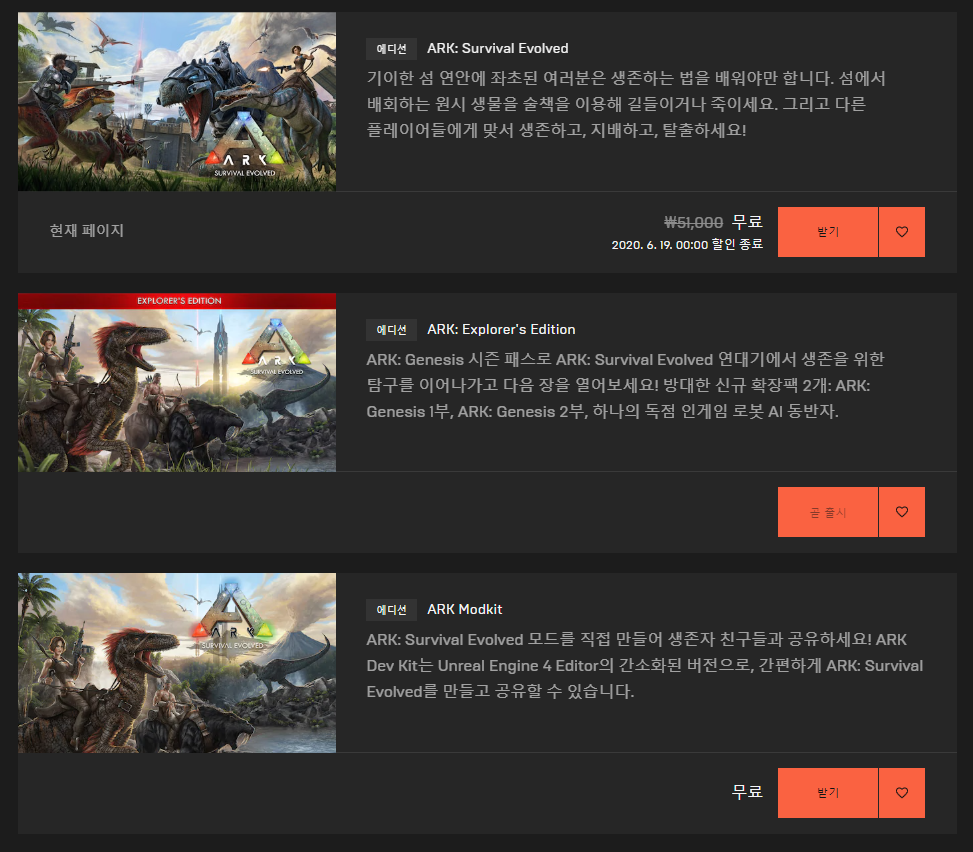 아크 서바이벌 이볼브드 본 게임뿐만 아니라 다양한 에디션이나 맵들도 무료로 즐길 수 있으니 미리미리 받아놓으면 좋겠군요. 참고로 이번에 받아두면 계속 게임을 즐기실 수 있으니 기회를 놓치지 말고 받아 놓으시면 좋을 듯 합니다.