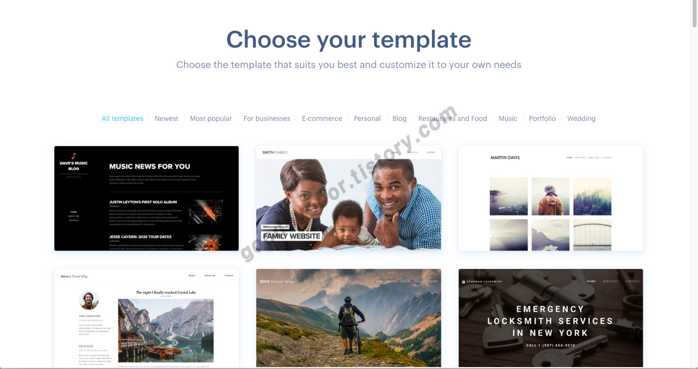 Wix 보다는 기능, 이미지, 템플릿이 적게 제공됨 |
