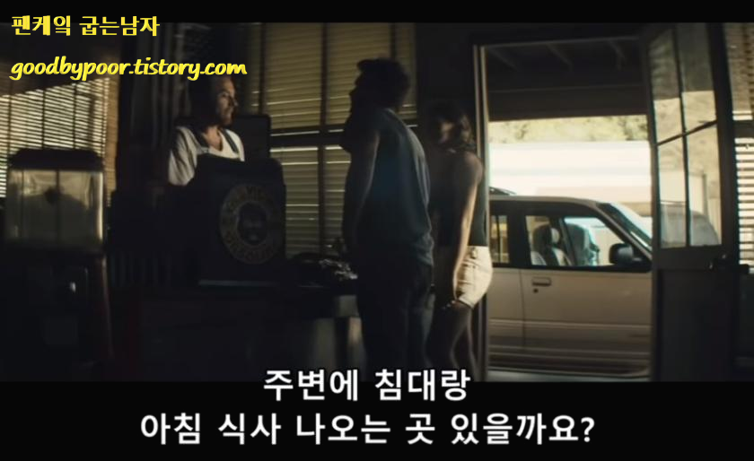 주인공인 알렉과 노라는 장거리 운행을 하던 중 길을 잃게 되고 늘 그렇듯 기름이 떨어져 주변의 가스 스테이션을 찾게 됩니다. 대부분 이런 류의 영화들의 흔한 시작이죠. 어떤 곳에 갔는데 갇히게 된다거나 길을 잃는다거나... 아무튼 겨우 찾아낸 가스 스테이션의 주인에게 주변 숙박을 할 만한 곳을 묻고 추천 장소로 향하게 됩니다.