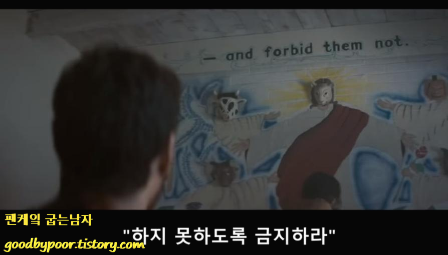 아무튼 여차 저차 해서 결국 알렉은 탈출에 성공하게 되고 어찌어찌해서 노라가 있는 곳을 찾아와 노라와 함께 탈출하게 되죠.(첨에 노라 말만 들었어도 이런 일은 없잖녀) 동물탈을 쓴 사람들의 추격을 피하며 열심히 도망가는 두 사람. 그러다 어느 교회에 도착하게 되고 그곳에서 이상한 벽화를 보고 이곳은 일종의 사이비 종교집단 마을이 아닐까 추측하게 됩니다. 하지만 곧 추격해 오는 사람? 동물? 들을 보게 되고 다시 탈출을 하던 중...
