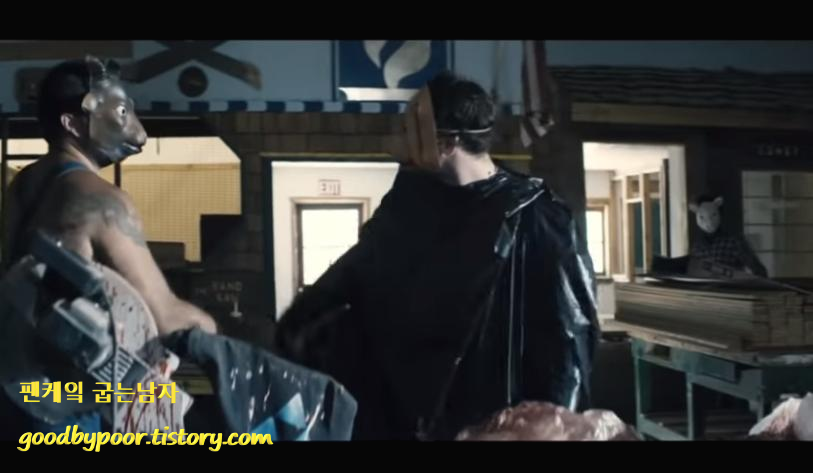 놀란 알렉은 소리를 쳐보지만 역시나 한방 맞고 그대로 뻗어 어딘가로 쓸쓸히 실려가게 됩니다. 여기서 잠깐 생각났던 부분이(자꾸 사람과 동물을 동일 관점에서 생각하는 게 맞는가 하는 의문이 들긴 하지만 그래도 솔직한 느낌) 예전 어느 영상에서 봤던 도살장 소들을 도축하는 장면에서 소의 머리를 무언가를 내려쳤던 장면이 떠오르더군요. 흠... 아무튼 알렉은 과연 무사할 수 있을까요?