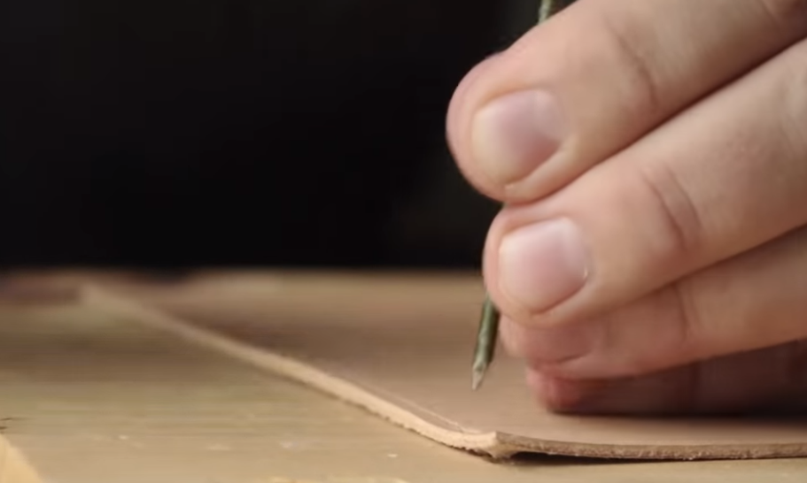 바느질할 구멍을 뚫을땐? 포크를 내려치면 휘어서 가죽이 못쓰게 될 수 있으니 이렇게 못을 활용하면 됩니다. 살짝살짝 톡톡톡 가볍게 망치질을 하면서 말이죠. 왠지 이게 더 효율적일 것 같다는 생각이 드는데요.
