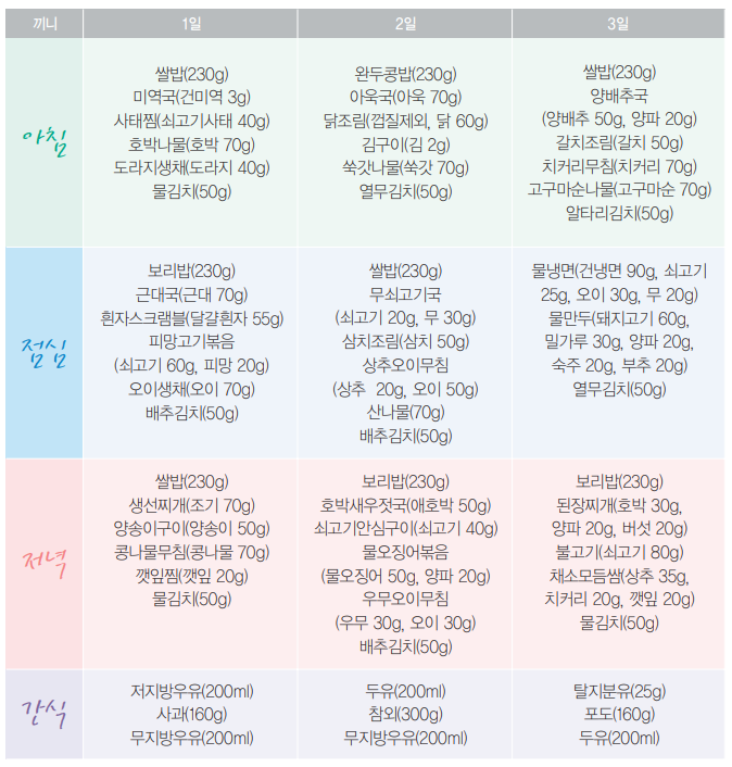 그럼 권장식단은 어떤 차이점이 있는지 살펴보죠.