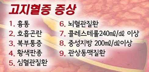 고지혈증에 좋은 음식을 알아보기 앞서 먼저 콜레스테롤과 관련된 고지혈증에 대해서 알아봐야 할 것 같군요. 우리몸 안의 혈액속에 지질이라고 하는 콜레스테롤과 중성지방이 정상적인 수치보다 높은 경우에 고지혈증이라고 합니다. 다른 말로는 이상지질혈증으로 부르기도 하는데요. 이 질병이 나중에 위험해 질 수 있는 이유는 혈액안의 지질 수치가 높으면 높을수록 추후에 심혈관계와 관련된 질병에 걸릴 확률이 높아지기 때문입니다.