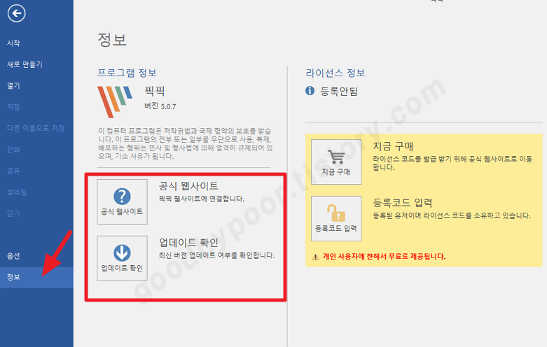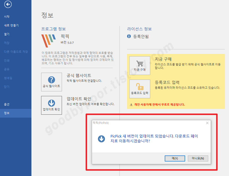 처음 픽픽 화면 캡쳐 프로그램을 사용하시는 분들은 최신버전을 다운로드 받아서 사용하시면 되고 기존 사용하시던 분들은 픽픽의 정보란에 보시면 업데이트 확인 정보를 통해 최신버전을 다시 다운로드 받아 사용하시면 됩니다. 그럼 잘 활용해 보시고 다른 소식이 있으면 다시 알려드리도록 하겠습니다.