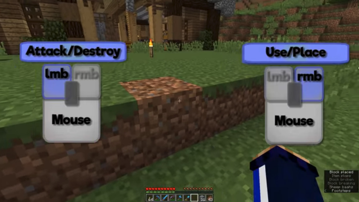 마우스 오른쪽 버튼 - 아이템 사용하기, 블록 쌓기, 방패 막기
