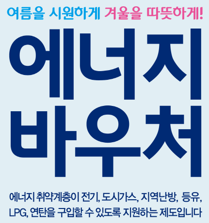 에너지바우처 제도란 취약계층에 속하시는 분들 중 신청자격이 되시면 도시가스나 전기등 에너지와 관련된 것들을 사용하실때 요금에 대한 여러가지 활용 가능한 할인제도라 할 수 있습니다. 그럼 에너지바우처 지급을 받으실 수 있는 신청자격, 어떤 할인제도가 있는지 지원내용, 신청방법, 어디에 문의를 해야 하는지등등 꼭 필요한 정보를 알아보도록 하겠습니다.
