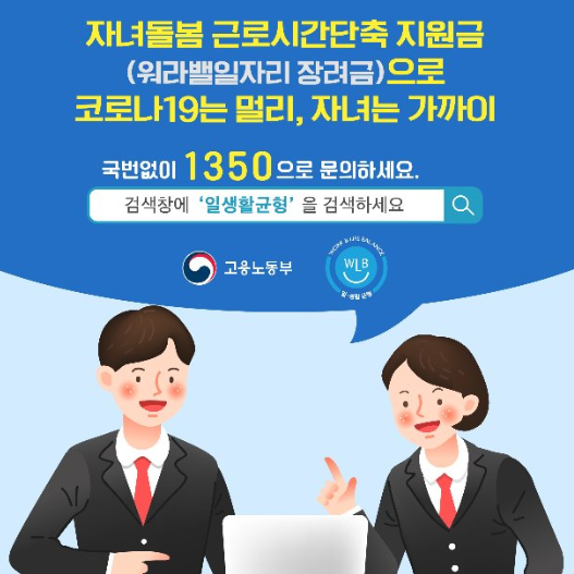 코로나19 추경과 관련된 주요 지원사업 중 워라밸 일자리 장려금 정책이 있는데요. 잘 모르시는 분들을 위해 설명을 드리자면 전일제 근로자로 근무하는 근로시간을 단축해서 근무할 수 있도록 지원하는 정책을 워라밸 일자리 장려금 제도라 할 수 있습니다. 근로자는 근로 단축시간을 사용할 수 있고 사업주는 단축근로로 인해 생기는 공백을 지원받는 제도라 할 수 있는데 일선 현장에서는 과연 효과가 있을지 미지수라 할 수 있을 것 같군요. 그럼 하나씩 관련 정보와 신청방법등을 알아보도록 하겠습니다.
