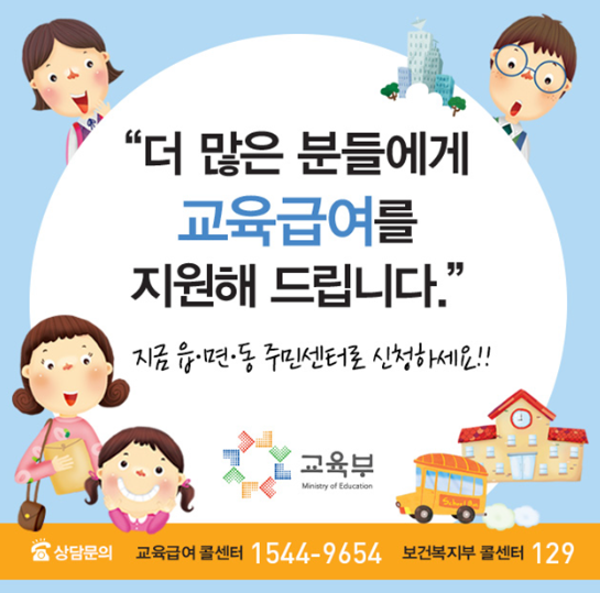 교육급여에 대한 문의는 보건복지 상담센터(129) 또는 교육비 중앙상담센터에 문의를 하시거나 주거하시는 읍면동 주민센터나 학교 또느 교육청에 문의를 해보셔도 됩니다.
