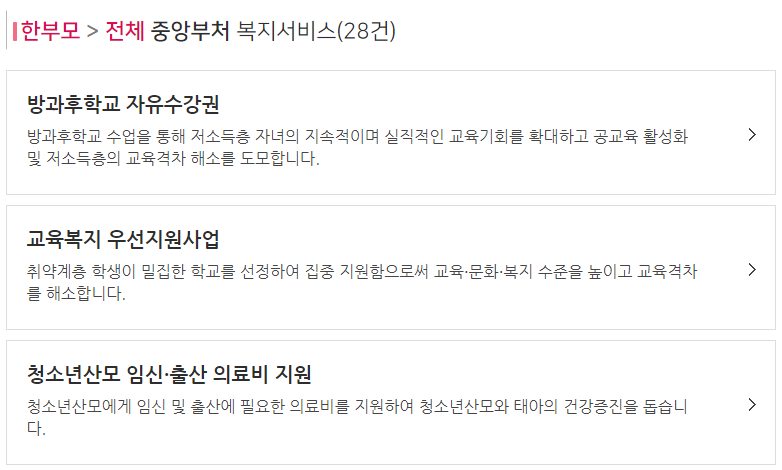 - 공동생활 지원 : 출산을 하고 난 후 양육을 하지 않는 미혼모를 위한 지원입니다.(기본 2년, 연장 6개월)