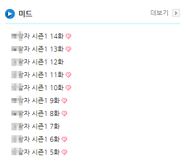 다나와티비의 각 카테고리마다 이렇게 리스트가 있어서 원하는 프로그램을 선택해서 보시면 됩니다. 최근 어떤 드라마나 예능이 인기가 있는지도 쉽게 알 수 있더군요. 아무래도 인기가 있으면 조회수도 많겠죠?