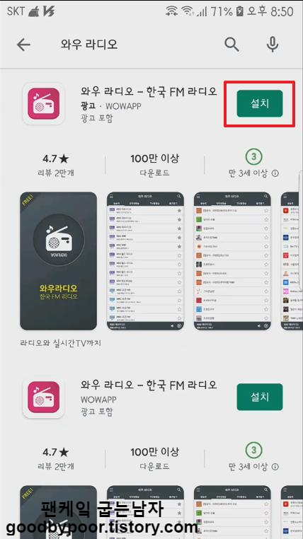 본인의 스마트폰에서 구글 플레이 스토어에 들어가 "와우 라디오"라고 검색하시면 됩니다. 혹 다른 라디오 앱이 궁금하신 분들이라면 그냥 라디오로 검색하시면 되실 듯하군요.