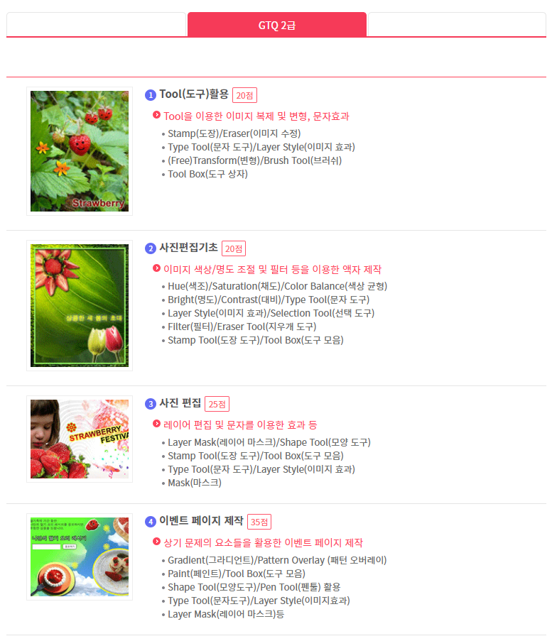 시험에 사용되는 소프트웨어 버전은 아도브 포토샾 CS4 이상 또는 한컴 EzPhoto3 up 등입니다.
