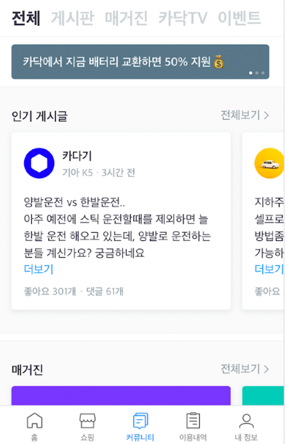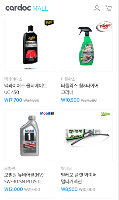 카닥 어플을 통해 수리를 하게 되면 1년동안 무상 품질 보증서도 받으실 수 있고 조금이라도 저렴한 가격에 엔진오일 패키지도 예약을 통해 받아보실 수 있다는점이 장점이라 할 수 있을 것 같군요. 또한 2년에 한번씩 자동차 종합검사나 정기검사도 미리 예약을 해서 대행해 주는 서비스도 있습니다. 중고차 카닥 어플을 보시면 손세차등의 세차서비스도 받아보실 수 있고 필요한 차량용품도 어플을 통해 구매가 가능하도록 되어 있더군요.