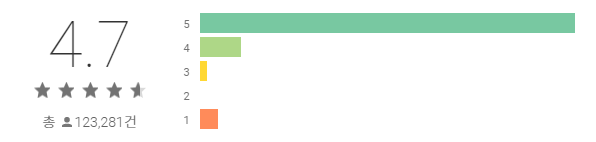 해당 어플은 평점도 꽤나 높은 편으로 다운로드해서 사용해본 분들이 5점을 많이들 줬다는 걸 확인해 보실 수 있습니다. 전 개인적으로 아쉬운 부분이 있어 4점 정도가 적당하지 않나 싶습니다. 혹 이 어플이 불만족스러워 다른 어플을 사욯해 보시고 싶으신 분들은 관련 어플들도 많이 있으니 한번씩 사용해 보시고 나에게 맞는 것으로 선택하시면 되실 듯 하구요.