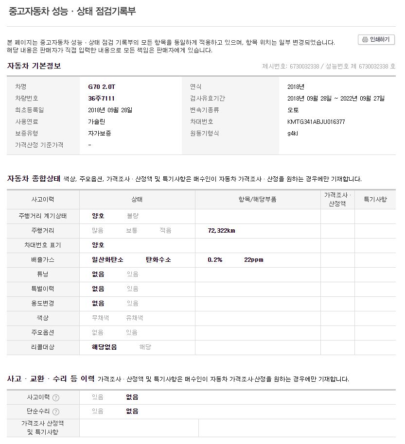 책정된 점수를 바탕으로 이 중고차가 판매가 될지, 책정된 시세표가 신뢰도가 있는지도 쉽게 확인해 보실 수 있고 보험이력이나 차량등록된 성능점검표도 확인해 보실 수 있습니다.