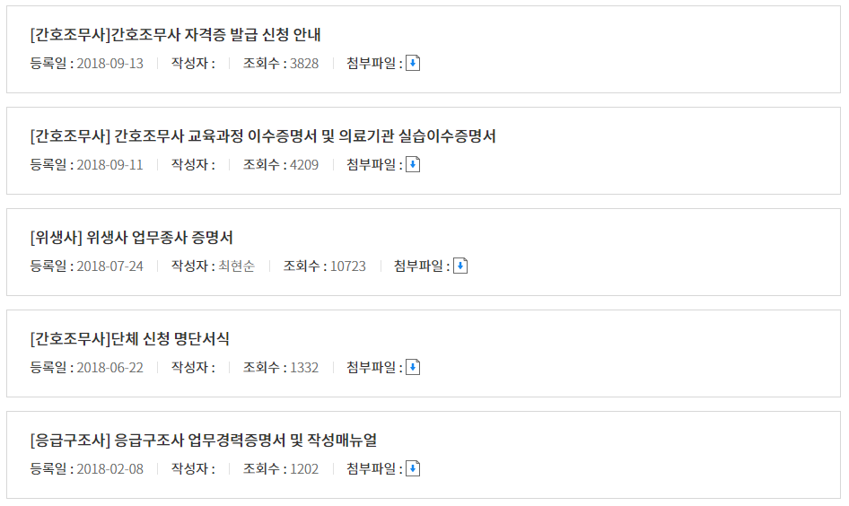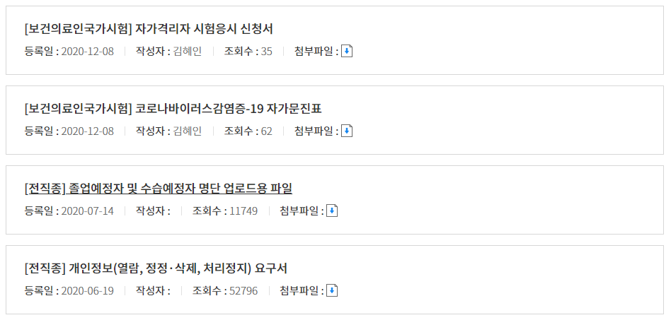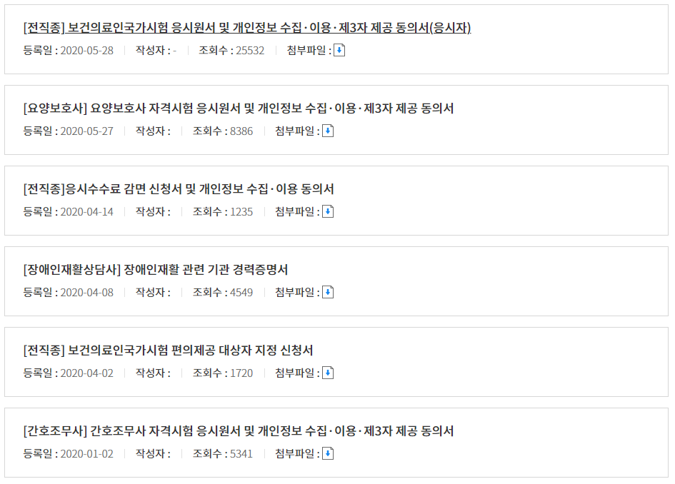 한국보건의료인국가시험원 시험정보 > 서식모음 >