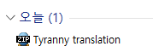 해당 파일을 다 받으셨다면 Tyranny translation 이라는 압축파일 하나가 생성될 겁니다. 압축을 푸시면 번역물이라는 폴더가 있는데요. 해당 폴더로 들어가시면 TyrannyKr 폴더가 보이실 겁니다. 또 들어가세요.