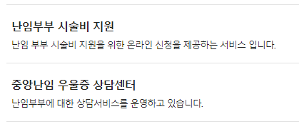 난임부부의 경우 수술비 지원이나 우울증 상담센터와 관련된 맘편한 임신서비스 원스톱 신청이 가능하니 홈페이지에 있는 내용을 잘 살펴보시면 도움이 되실듯 합니다.