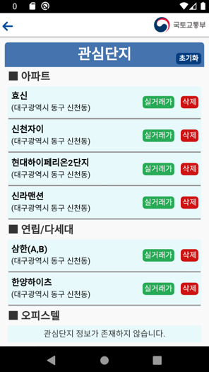 pc 에서 찾아보시는 것과 비슷하게 메뉴가 잘 정리되어 있어 쉽게 자료를 찾아보실 수 있는 앱입니다. 찾은 자료를 별도의 관심단지로 체크해 놓으실수도 있고 다양한 부동산들의 정보도 앱을 통해 알아보실 수 있습니다.