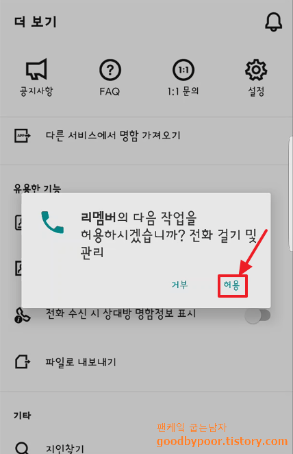 메인화면의 우측 하단 더보기를 클릭해 보시면 알림에 대한 설정들이 있는데 발신자의 명함정보 표시 기능이라는 것이 있습니다. 어떤 기능이냐면 저장한 명함의 당사자가 전화를 걸어오면 내 스마트폰에 해당 명함이 뜨면서 어떤 사람이었는지 쉽게 기억할 수 있게 도와줍니다. 신박하죠? 꼭 설정하셔서 활용해 보시기 바랍니다.