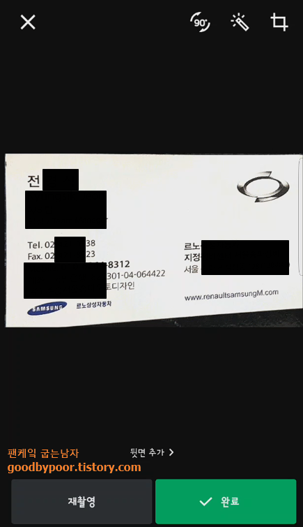 깔아서 사용해본 느낌은 영업직에 계신 분들이 라면 반드시 필요한 어플이 아닐까 하는 생각이 듭니다. 무엇보다 명함에 있는 내용을 일일이 작성해서 저장할 필요가 없다는 게 참 효율적이란 생각이 들더군요. 필요하신 분들은 잘 활용해 보시길 바랍니다. 이상 마치겠습니다. 그럼...