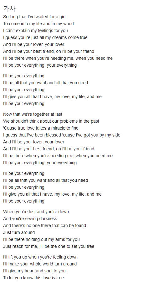 "토미 페이지(Tommy Page)" 의 "아일 비 유어 에브리씽(I'll be your everything)" 입니다. 46세라는 젊은 나이에 자살이라는 슬픈 선택을 했던 뮤지션. 잘생긴 외모와 감미로운 목소리로 당시 여성들을 고함치게 했던 팝스타였죠. 놀라운 사실은 그의 외증조할머니가 한국사람이었다는 사실. 그만큼 우리나라와 인연이 많았던 스타로 94년에 내한공연을 하며 이 사실을 말했었죠. 예전 인기 가수였던 하수빈씨와 함께 초콜렛 광고도 찍었었다는 사실 알고 계신가요? 이젠 볼 수 없는 팝스타 그의 음악으로 다시 만나 보시죠~