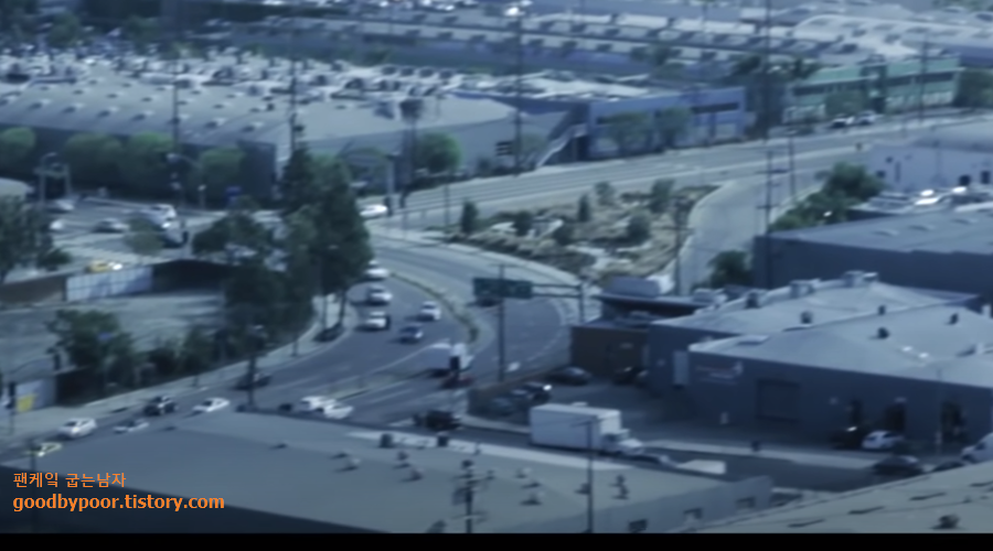 더 황당한 건 옥상에 올라와 밖을 보니 마치 세상은 아무 일도 없다는 듯이 잘 돌아가고 있다는 것. 다들 분위기 파악이 안 되고 있죠? 이때부터 문득 프리즌 포스트라는 이 영화의 결말이 어찌 될지 조금 궁금해지더군요. 밖을 지키고 있던 경비를 따돌리고 그들은 옆 건물로 들어가게 되는데...