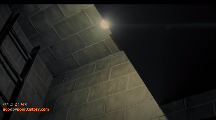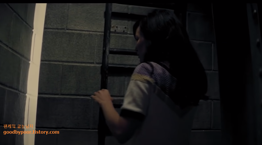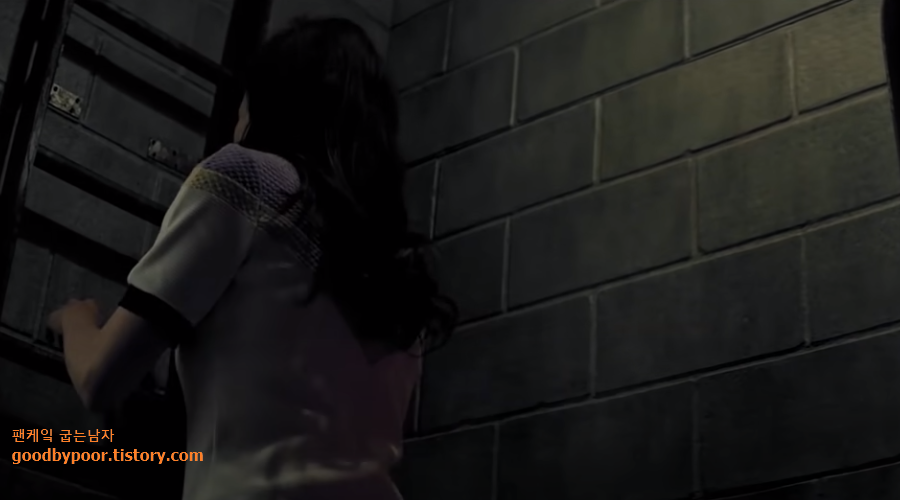 각자 출입문의 전자 장치선을 끊고 문을 열어 탈출을 시도합니다. 역시나 탈출전 사랑의 약속 하나 멋지게 날리고 문밖을 나서는데... 눈앞에 있는 사다리의 끝은 그냥 벽돌로 된 벽. 하지만 주인공답게 포기하지 않고 당겨봅니다. 당겨집니다. 이렇게 쉽게 찾을 거 뭐하러 이렇게 허접한 트릭을 썼는지... 일단 그냥 넘어갑시다.