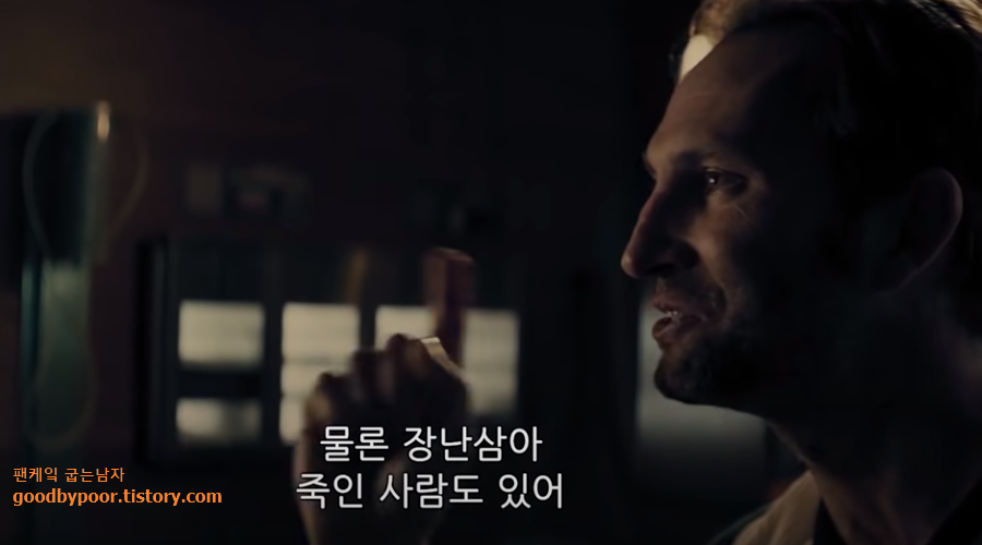 어느덧 혼자서 갇힌 공간에 지낸 지 5년이라는 시간이 지나고 다들 정신줄을 간신히 부여잡고 있던 그때 한넘이 먼저 정신줄을 살짝 놓습니다. 본인의 과거를 밝혔던 것. 자신은 범죄자였으며 살인을 여러 번 저질렀다... 블라블라 블라... 꼭 이렇게 사고 치는 캐릭터가 있죠. 이런 캐릭터는 항상 분위기 파악을 못하고 결국 끝까지 갑니다. 그래서 결과는?