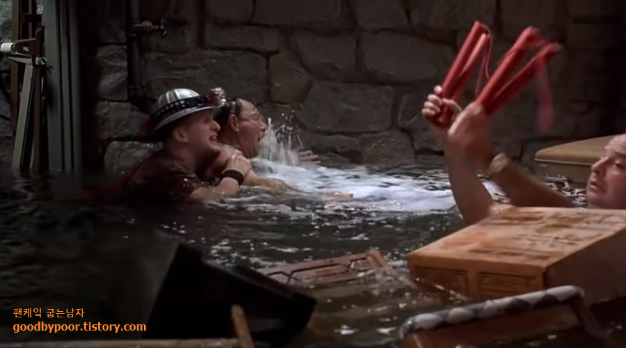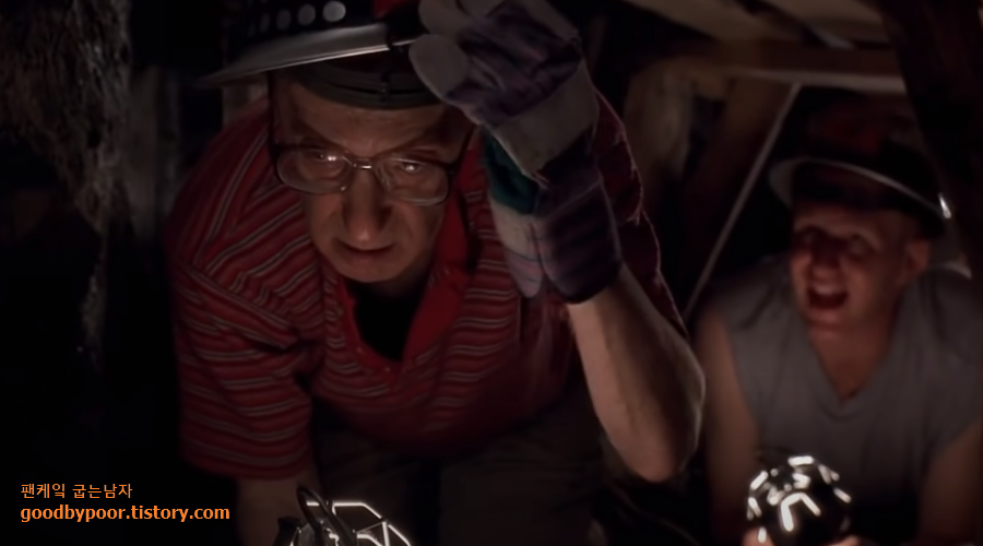 땅굴을 판답시고 벽을 뚫다가 지하를 물바다로 만들기도 하고, 한 번에 퍼낼 삽질을 셋이 합동으로 미련스럽게 일하는 모습 등을 보면서 범상치 않은 이들의 지능 수준을 깨닫게 됩니다. 모두 합쳐 아이큐 100도 안될 것 같은 이들의 눈물겨운 노력에 박수와 웃음을 보냅니다.