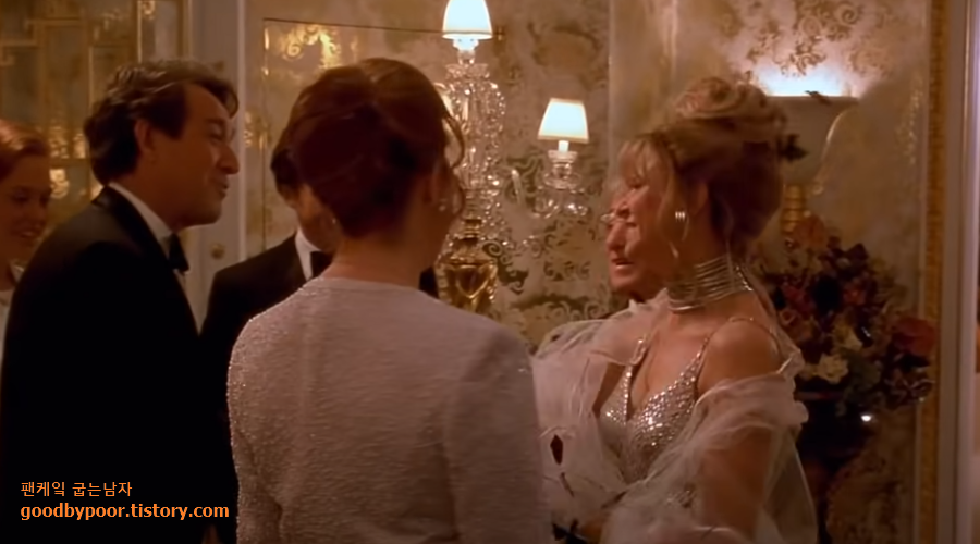 잘 어울린다고 착각하고 있던 프렌체의 뒤로 사람들의 쑥떡쑥떡을 들은 프렌체... 무언가 결심을 하고 내린 결론은 미술품에 대한 각종 지식과 얼굴까지 잘생긴 데이비드(휴 그렌트)를 찾아가 상류사회의 문화와 언어를 공부하고 배우기로 마음먹게 됩니다.