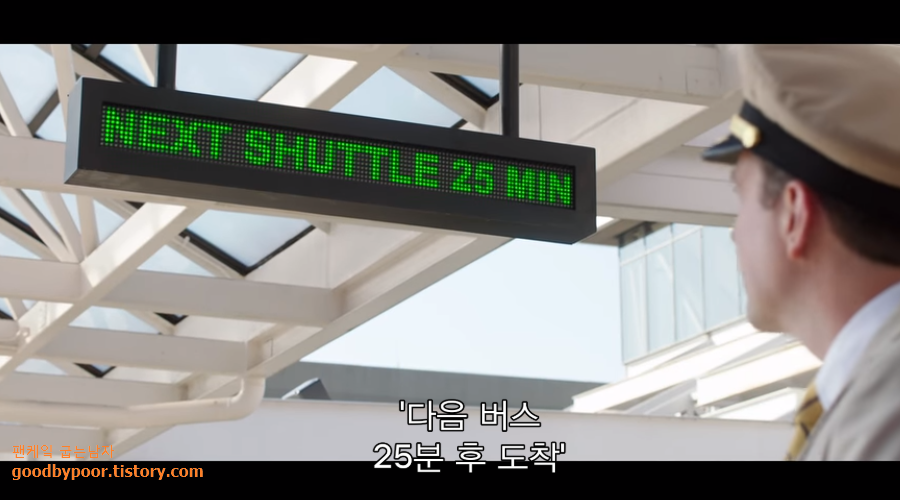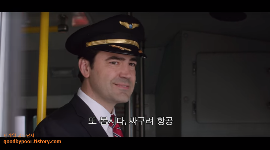 비행기가 공항에 도착하고 퇴근하는 아빠. 버스를 기다리다 고가 항공사(?)의 기장을 하나 만나게 됩니다. 그것도 미모의 스튜어디스를 동반하며 왠지 모를 재수 없음을 가득 품은 그런 인물을 말이죠. 이 등장인물을 잘 기억해 주시길 바랍니다. 나중엔 한 역할하니까요.^^ 재수 없는 고가 항공사의 기장으로 인해 저가 항공사 기장 아빠는 버스를 놓치게 되고 결국엔 25분을 더 기다려 집으로 돌아오게 되는데...