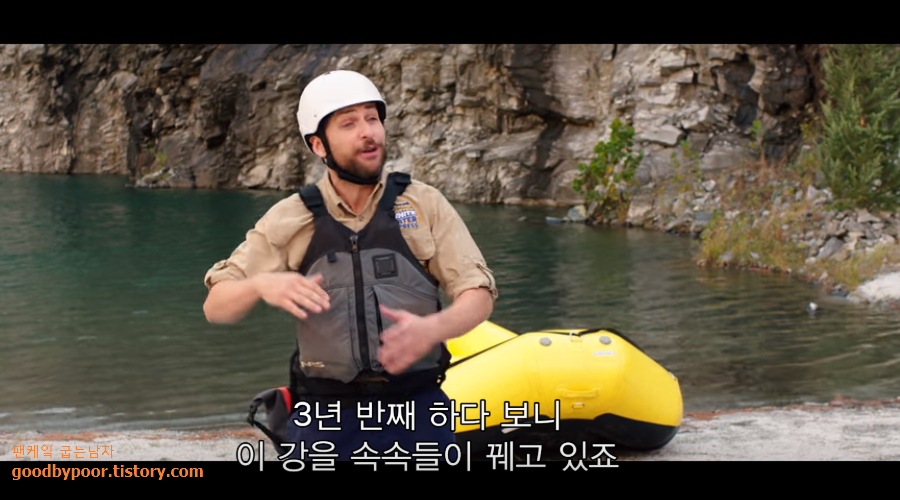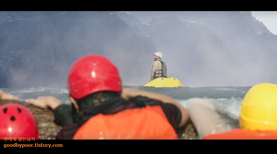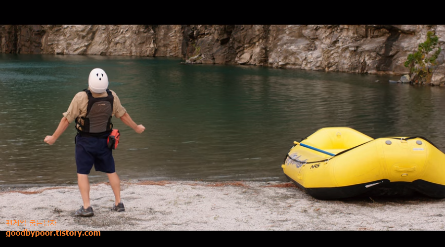 다음으로 이들이 선택한 여정 코스는 바로 보트 타기. 그런데 시작부터 스멀스멀 비운의 냄새를 풍깁니다. 교육하고 같이 타게 될 가이드가 바로 그 원흉이죠. 처음부터 말도 안 되는 실없는 소리로 혼자만의 스탠딩 코메디를 하는 가이드의 모습에서 이 녀석도 사고 한번 치겠구나 합니다. 이제 막 보트를 타려고 할 때 한통의 전화를 받는 가이드. 그 전화는 바로 약혼자의 전화. 하지만 파혼을 외치는 약혼자... 그래서 가이드는 안 그런 척 하지만 실연의 고통을 내면에 갖고 가족들과 함께 보트를 탑니다. 어째...대충 앞으로 벌 어질 일이 상상이 가시죠?