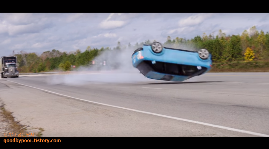 이에 아빠는 영화 주인공 흉내를 내보겠다면 운전실력을 뽐내려다 열심히 고속도로위를 구르게 됩니다. 역시나 범상치 않은 가족이죠? 참 답 없는 가족이다...