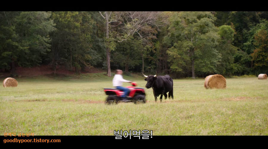 진정한 카우보이의 삶을 보여주겠다며 아빠에게 바이크를 권하는 이놈. 열심히 달리며 소몰이를 하는데 여기서 아빠가 대형사고를 치고 말죠. 바로 아끼던 소를 바이크로 박살 내 버린 것. 이렇게 그들의 순탄치 않은 여정은 또 하나의 막을 내리고 다시 다음 장소로 이동합니다.