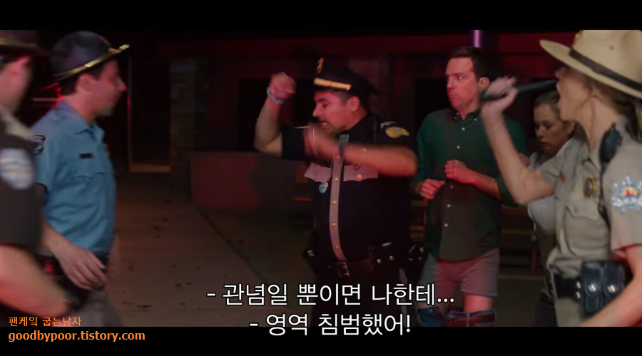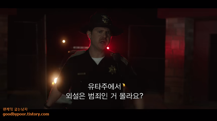 그래서 이들도 둘만의 비밀스런 대화를 위해 이곳을 찾아왔지만 이미 대기 중인 많은 부부들로 인해 목적을 달성하지 못하고 4개 주에서 각각 근무하는 경찰들에게 혼나게 되는데 결국 이들의 지역분쟁(?)으로 인해 간신히 도망가게 됩니다. 땅이 넓어서 그런지 이런 장소가 나름 의미가 큰 듯 보입니다. 단지 스토리상의 설정인지 아님 실제로 이런 일이 벌어지는지는 안 겪어봐서 잘 모르겠습니다.