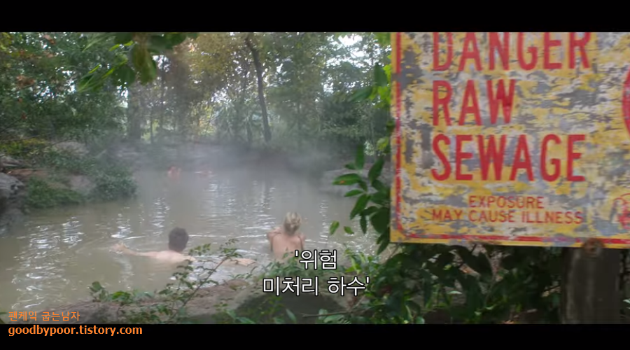 드디어 도착한 온천. 하지만 초입부터 많은 방문객들로 인해 오랜 시간 기다려야 하죠. 가족을 위해 꼼수를 부려보는 아빠는 혹시나 모를 알려지지 않은 온천을 찾게 되고 마침내 하나를 찾습니다. 너무나 아름다운 곳이라 생각한 그들은 수영복을 갈아입고 열심히 머드팩도 하고 가글도 하며 가족만의 즐거운 시간을 가집니다. 그런데 그곳은 온천이 아닌 더러운 물로 가득한 미처리 하수가 모이는 곳. 역시나 거치는 곳 하나하나가 정말 순탄하지 않습니다. 온천을 마치고 나와서도 자동차는 도둑을 맞아 모두 부서져 있고... 암튼 참...
