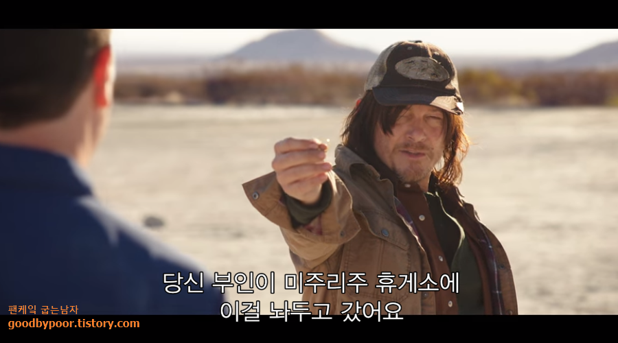 반지도 찾아주고 더 이상 요상한 자동차를 쓸 수 없는 가족을 집까지 태워주기도 하니까요. 그래도 절대로 믿어선 안 되는 존재죠. 혹 이 아저씨가 눈에 익는다 하시는 분은 워킹데드를 다시 보시면 됩니다.