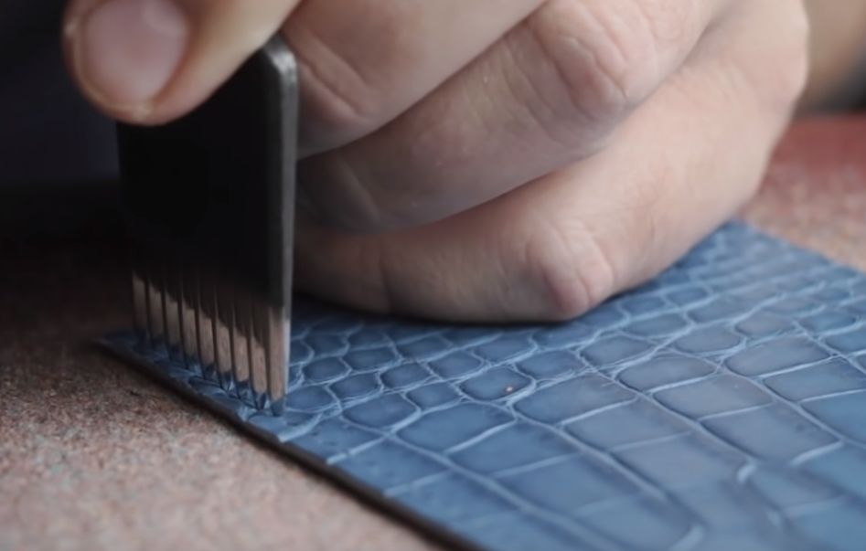 5. 기준선을 긋는 도구 - 크리저라 부르며 가죽 가장자리 치즐을 이용해 구멍을 뚫기 전에 기준선을 그어주는데 필요하다.