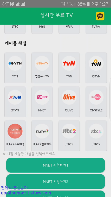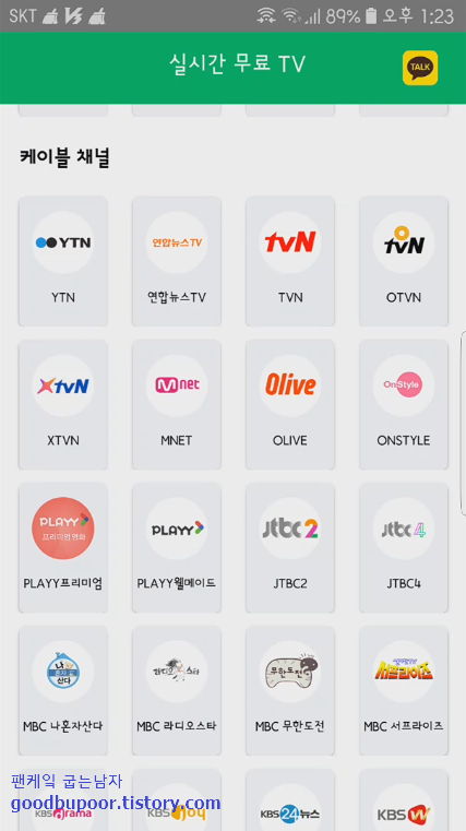24시간 뉴스 채널로 유명한 YTN을 비롯해 연합뉴스 / TVN / OLIVE / MBC 관련 라디오 스타, 무한도전, 나 혼자 산다, 서프라이즈 / KBS JOY / KBS DRAMA / KNN / SPOTV / SBS GOLF / OGN / FTV / K바둑 / BILLIARDS TV / 가요 TV / EBS KIDS / CBS TV / BBS 불교방송 등 꽤나 다양한 채널을 실시간 시청하실 수 있는데요.