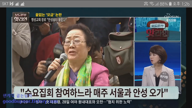 위 이미지는 TV조선을 실시간 시청하는 장면인데요. 전체화면을 누른 후 모바일을 가로로 눕히면 전체화면 보기로 시청이 가능합니다. 해당 채널도 전체 화면임에도 화질이 깨끗하게 나오더군요. 와이파이로 시청하는데 크게 끊기는 현상도 찾아볼 수 없었던 것 같습니다. 사용자가 많아지면 종종 끊기거나 싱크가 잘 맞지 않는다고 하던데 제가 시청할 때는 큰 문제가 없더군요.