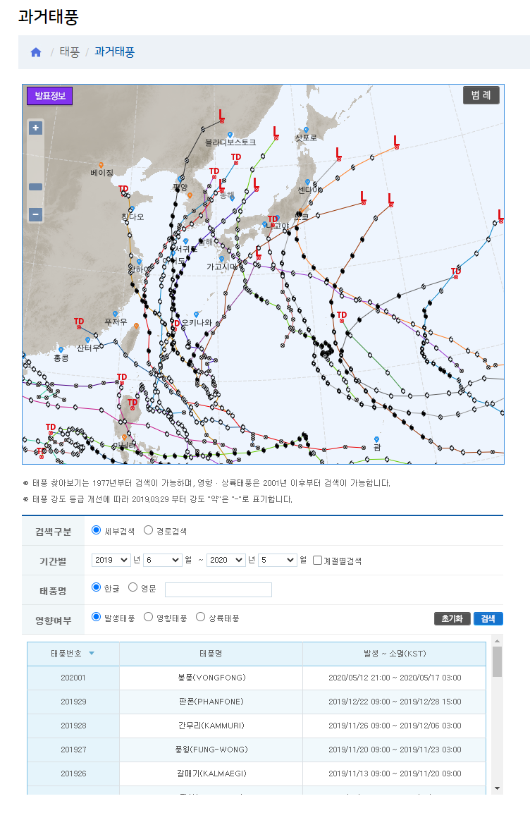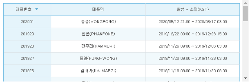 2019년 6월부터 현재까지 지나갔던 태풍에 대한 정보를 검색해 봤는데요. 올해 5월 초부터 이미 태풍이 시작되었더군요. 봉퐁이라는 태풍인데 그 크기가 작았는지 소식을 들어보지도 못했군요. 작년엔 12월에도 태풍이 왔었군요. 올해는 미리미리 실시간으로 이동경로 등을 체크해보고 피해를 최대한 줄이는 노력을 모두 해야 할 것 같습니다.