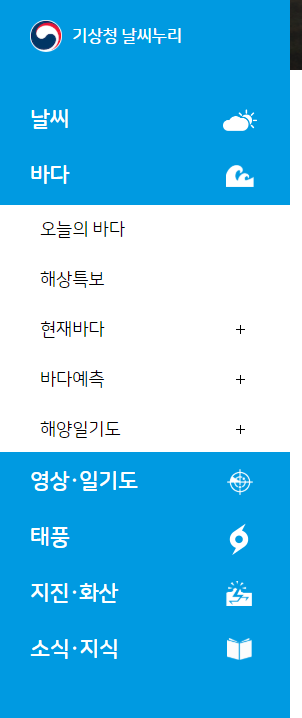 하지만 바다에서 일을 하시는 분들처럼 기상, 날씨, 태풍 관련 정보가 중요하신 분들은 여전히 우리나라 기상청의 도움을 많이 받고 있을 것이고 모든 정보가 신뢰가 가지 않는 것은 아닐 거라 생각합니다. 그래서 해당 사이트를 처음 알려드리는 건데요.