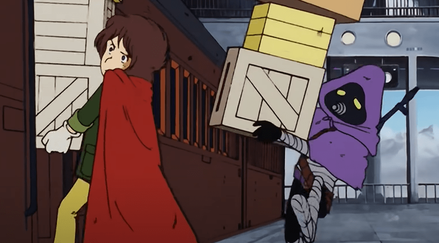 엄마의 죽음에 분노한 철이는 자신도 꼭 기계 인간의 몸을 얻어 복수할 것을 다짐하고 열차 티켓을 훔치기 위해 애쓰게 됩니다. 하지만 기계 인간들에게 발각되어 목숨을 잃을 처지에 놓이게 되죠. 하지만...
